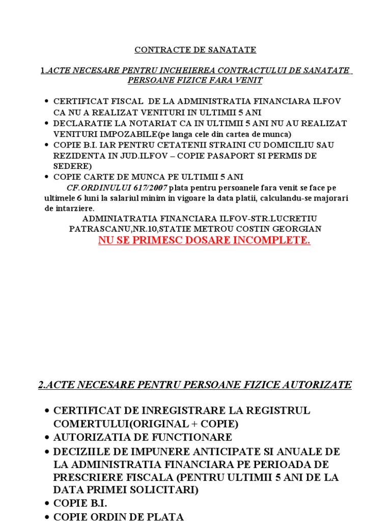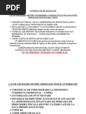 Acte Necesare Pentru Incheierea Contractului De Sanatate Persoane Fizice Fara Venit