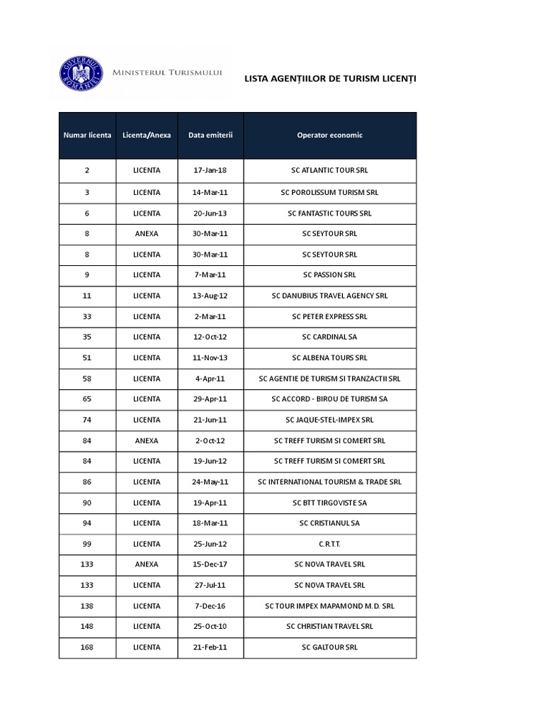 Lista Agentiilor De Turism Licentiate 07 04 2017 Tourism Business