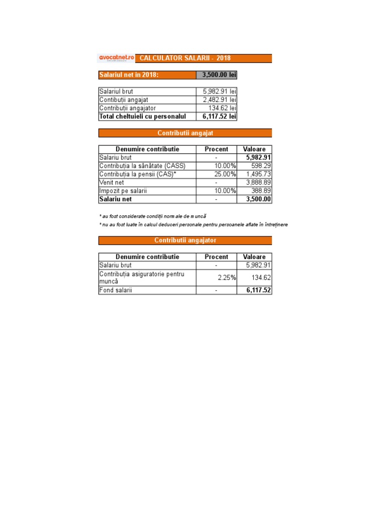Calculator Salariu Net 2018 Sursa Www Avocatnet Ro