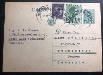 1935 Sebes Alba Romania Stationery Postcard Cover To Neustettin Germany Ebay