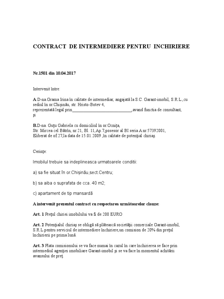 Doc Contract Intermediere Inchiriere Proprietari Persoane Fizice Final Bogdan Feier Academia Edu