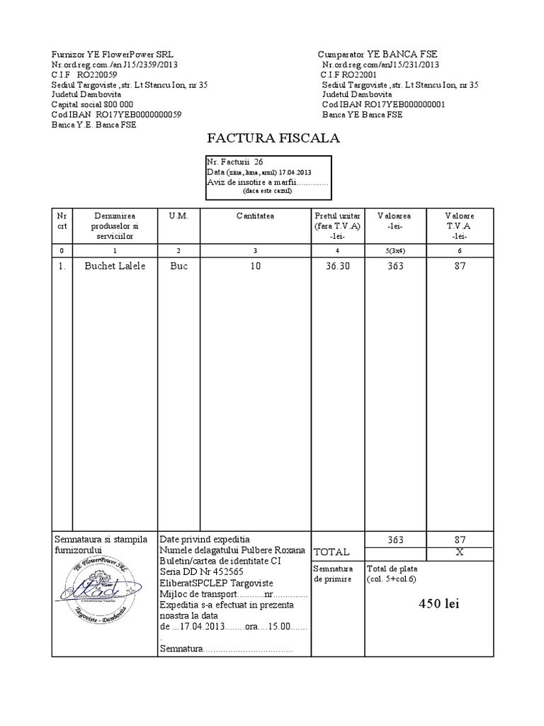 Exemplu De Factura Completata