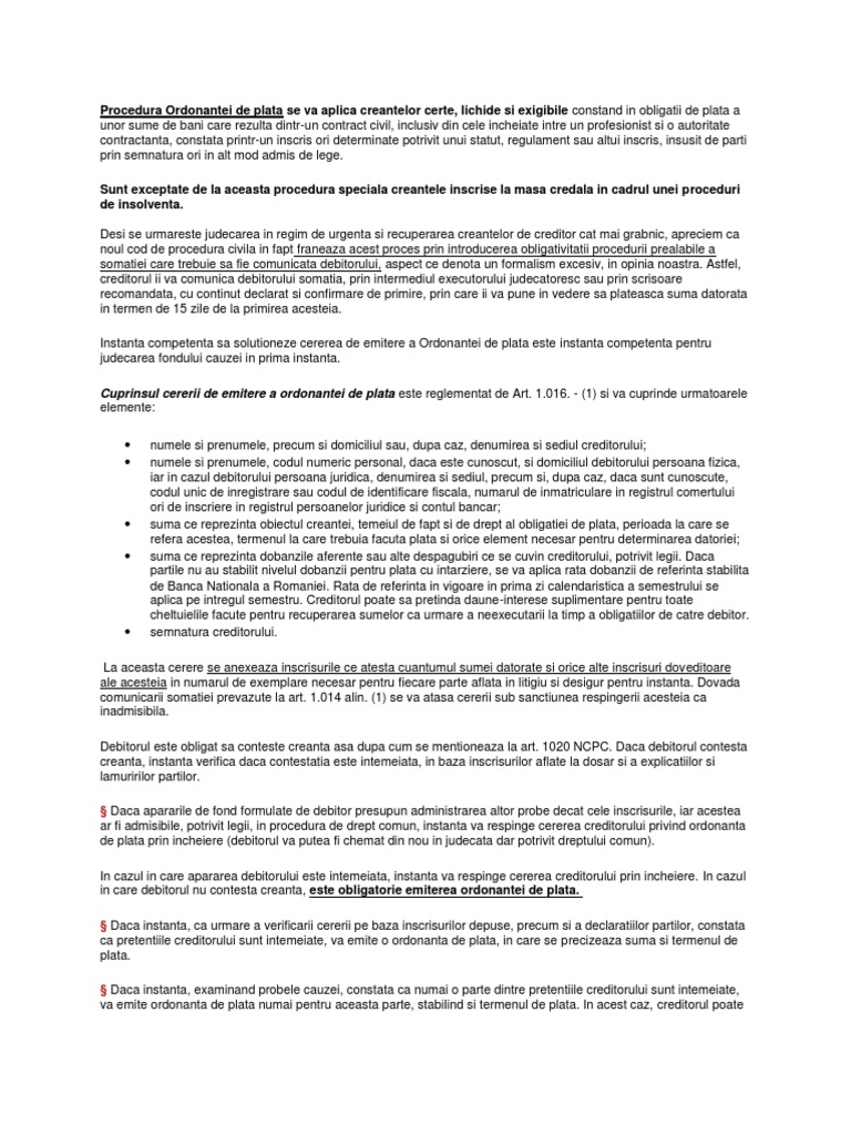 Doc Ordonanta De Plata Noul Cod De Procedura Civila Stancu Manuela Academia Edu
