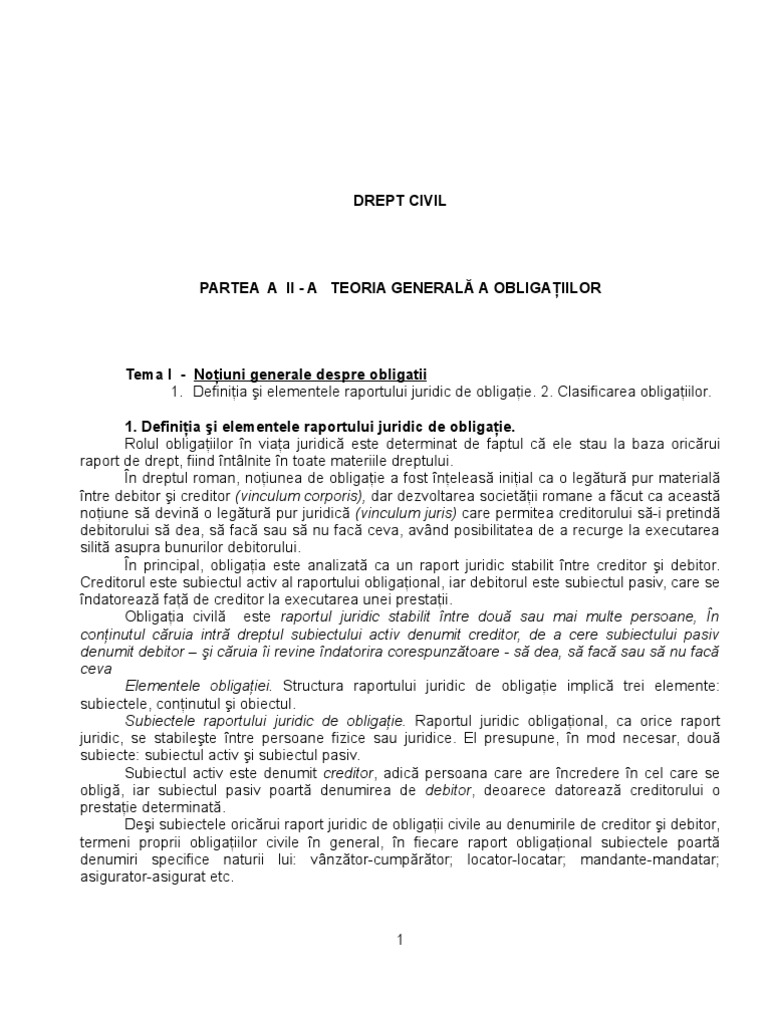 Anul Ii Obligatii Noul Cod Civil Note De Curs
