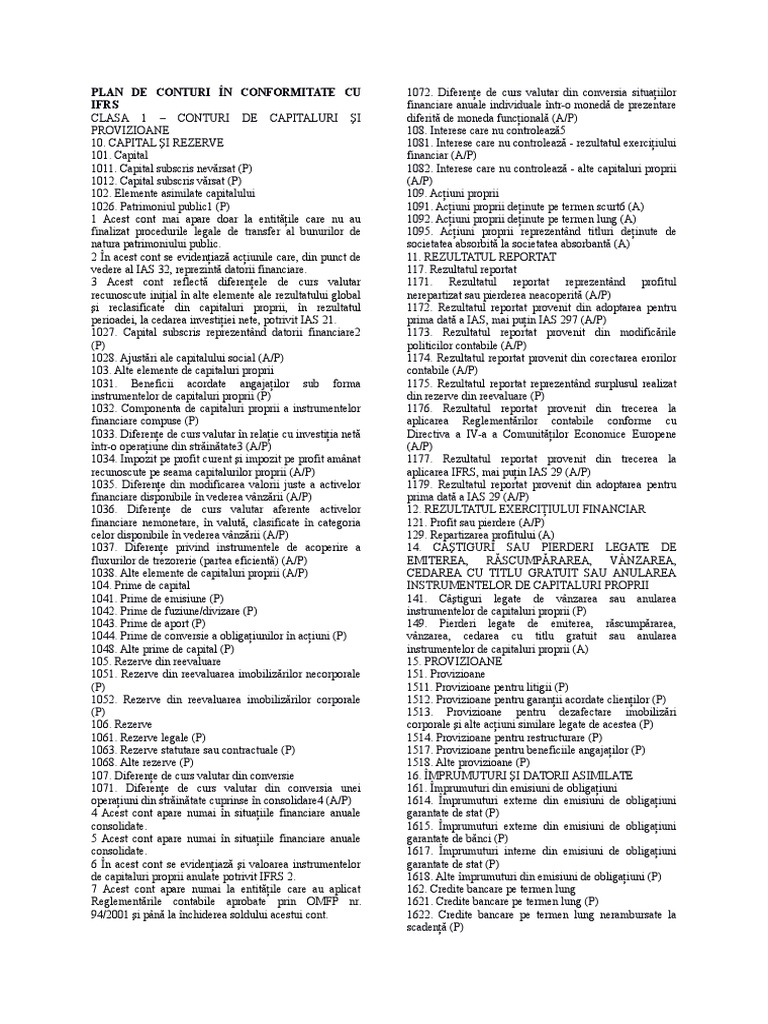 Plan De Conturi In Conformitate Cu Ifrs Docx