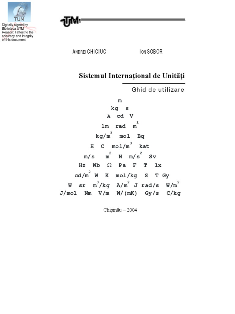 Prezentarea sa detaliată poate fi găsită de exemplu în 1 unde sunt date toate denumirile simbolurile definiţiile şi relaţiile. Sistemul internaţional de unităţi si este cel mai răspândit sistem de unităţi de măsură şi în prezent este adoptat oficial în aproape toate statele lumii. în prezent unitatile de masura cuprinse în sistemul international de unitati si sunt divizate în trei clase.